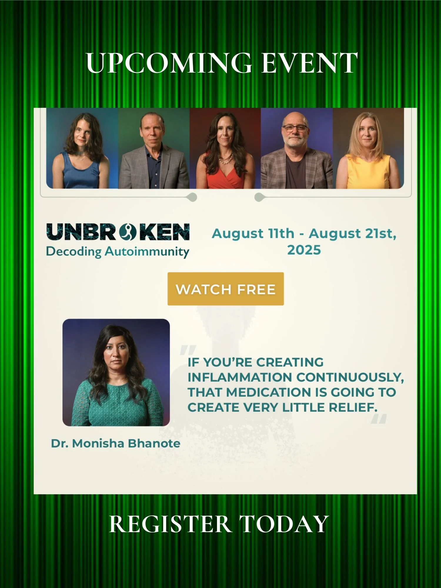 Join Dr. Monisha Bhanote and 29 leading experts in functional and integrative medicine for ZONIA UNBROKEN, a free 10-day docuseries exploring the root causes of autoimmunity and how to reverse them naturally.
