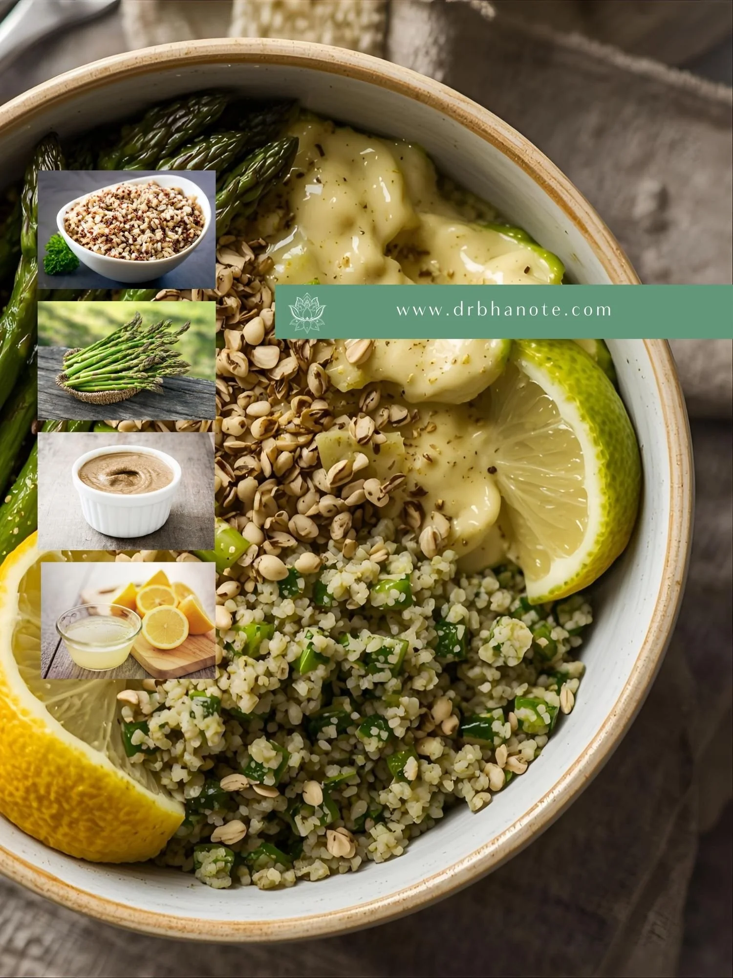 Celebrate the freshness of spring with this vibrant Green Goddess Quinoa Bowl. Packed with asparagus, leafy greens, and a creamy lemon tahini dressing, this recipe is a nutrient-dense, energizing meal. Quinoa provides complete plant-based protein, while the tahini-lemon dressing adds healthy fats, flavor, and a touch of alkalizing magic. Perfect for lunch, dinner, or a springtime reset!