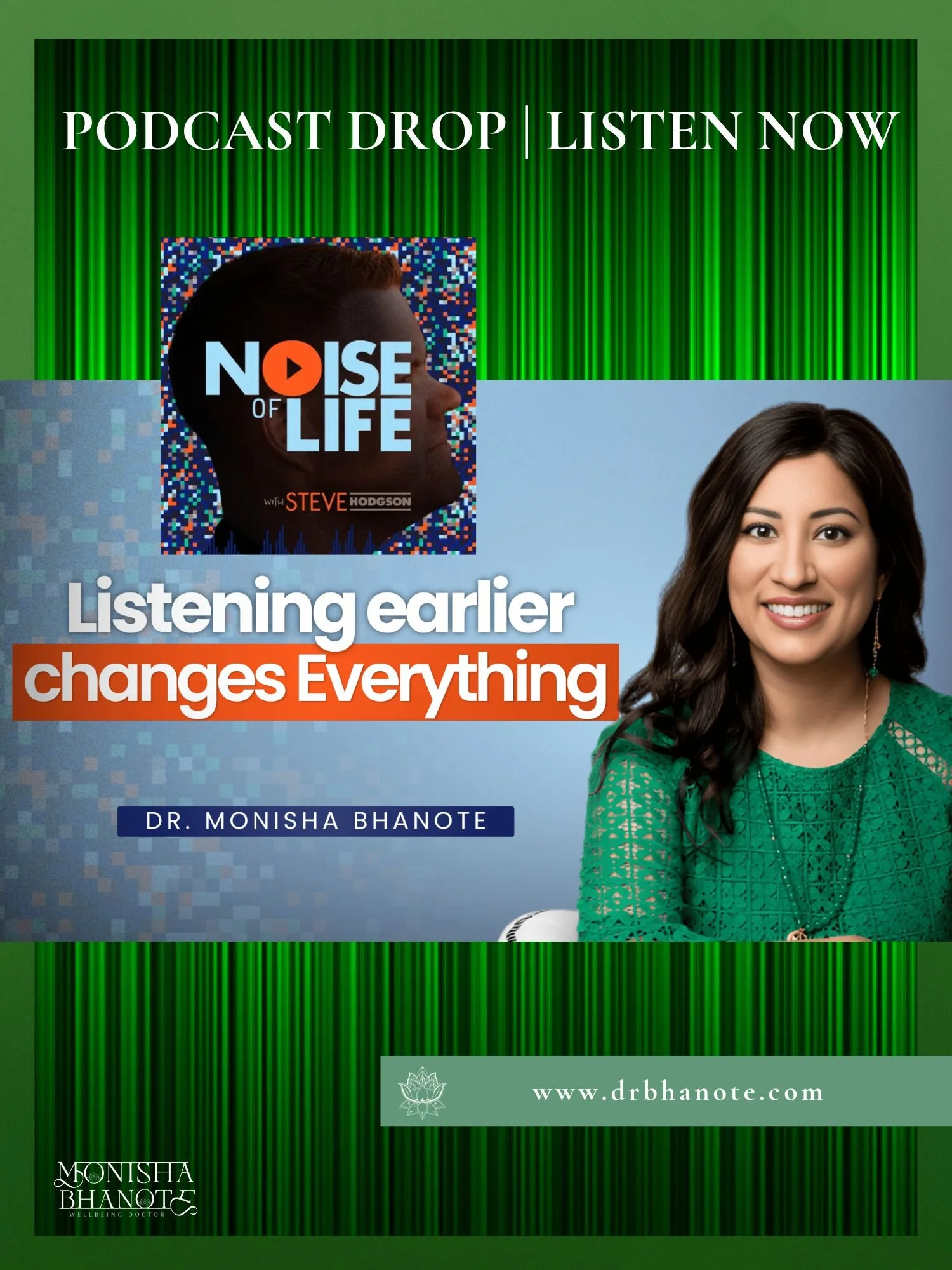 Dr. Monisha Bhanote’s appearance on The Noise of Life Podcast offers a grounded, hopeful roadmap for anyone seeking to move from reactive healthcare to intentional, cellular-level well-being. By learning to quiet external noise and tune into the body’s intelligence, listeners are reminded that prevention is possible—and that healing begins long before diagnosis.