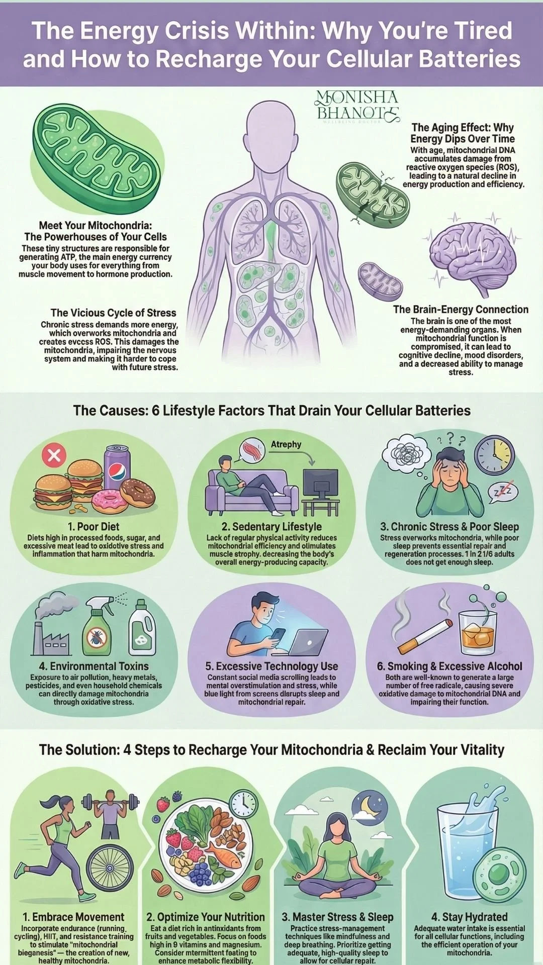 Increased Risk of Chronic Diseases: Mitochondrial dysfunction is linked to a range of chronic diseases, including neurodegenerative diseases (like Alzheimer’s and Parkinson’s), cardiovascular diseases, diabetes, and even certain cancers. Failing to address the lifestyle factors that harm mitochondria increases your risk of developing these conditions.