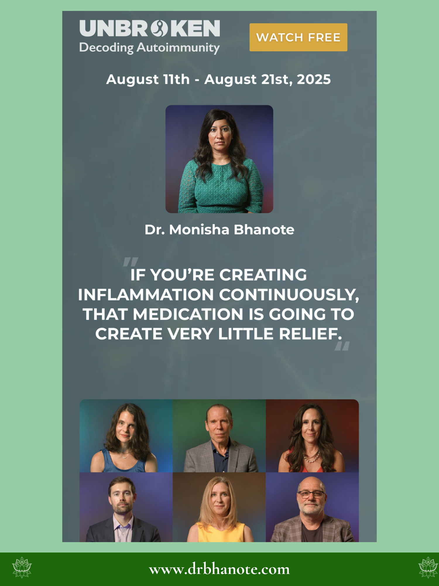 In the groundbreaking Zonia UNBROKEN: Decoding Autoimmunity Docuseries, Dr. Monisha Bhanote joins 29 leading medical experts in functional medicine, immunology, and cellular health to uncover the real root causes of autoimmunity—and how to reverse them.